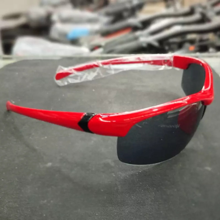عینک دوچرخه سواری افتابی مناسب استفاده در روز رنگ فریم تمام قرمز لنز مشکی ، دودی