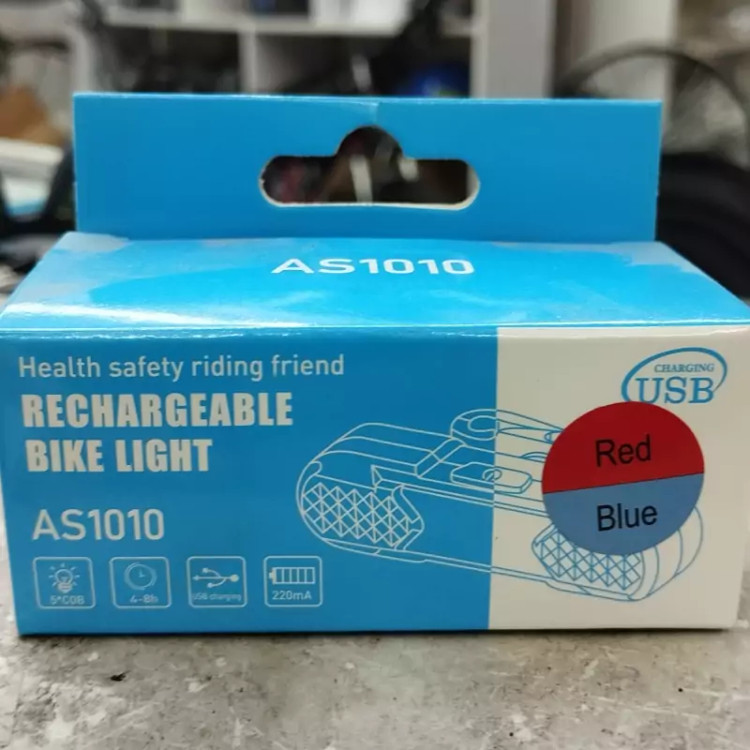 چراغ پلیسی دوچرخه شارژی مشخصات محصول مدل AS1010 دارای دو رنگ قرمز و آبی (پلیسی) قابل شارژ مدت زمان شارژ دهی 4تا 8 ساعت باطری 220 mAh پلیمری دارای 4 حالت نوردهی متفاوت به همراه کابل شارژ usb برای شارژ