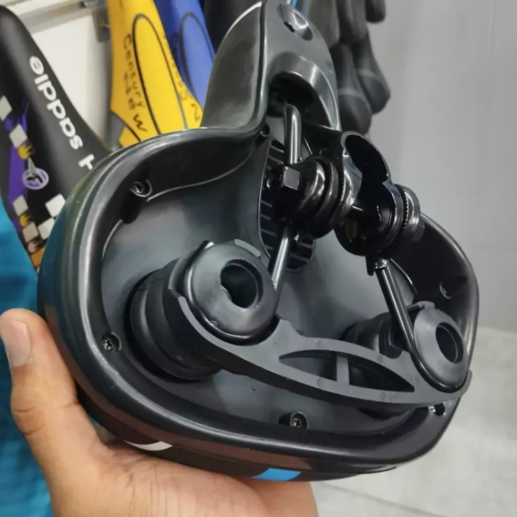 زین پهن چاک دار کپسول دار بسیار نرم و راحت مناسب برای رکاب زدن طولانی رنگ بندی موجود آبی و سفید