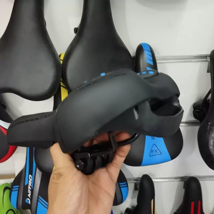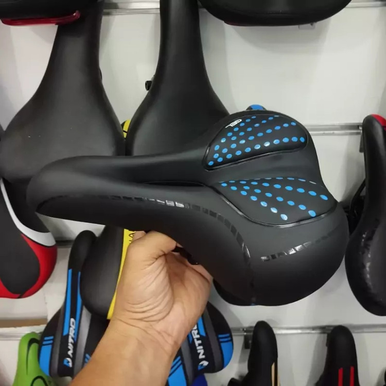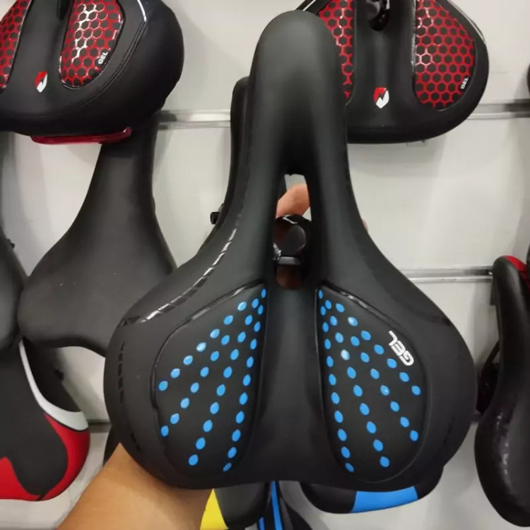 زین پهن دوچرخه طبی ژل دار دسته دار مناسب استفاده طولانی مدت و شهری رنگبندی قرمز آبی زرد
